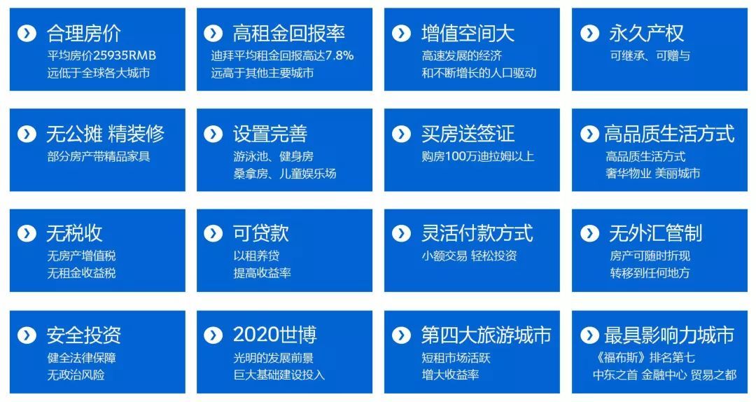 众多事实反映出迪拜房地产的投资利好。2020年世博会即将在迪拜举办、迪拜城市基建升级、买房获永居身份的政策颁布,以及在迪拜房价与租金持续下跌之际,“股神”巴菲特依然加码迪拜房地产!这无疑代表着巴菲特对迪拜房价的信心。