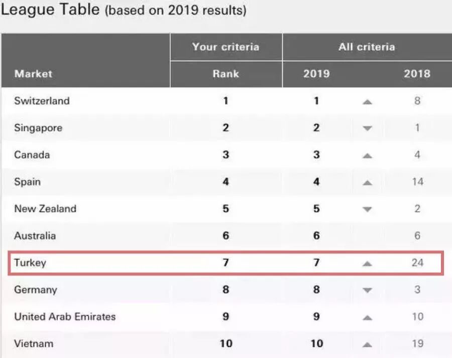 近日汇丰银行发布了《2019年全球移居报告》,土耳其不仅力压德国,更是从去年的第24位上升到第7位,成为世界上最受欢迎的移居地之一。