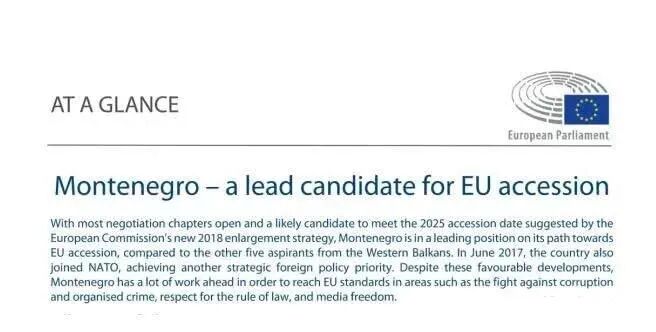 欧洲议会官网发布的一份题为《黑山——加入欧盟排名靠前的候选国》报告称,从技术层面来讲,黑山在与欧盟的关系中居于重要地位!黑山因其领先于其他国家的入盟进度,且与其邻国没有主要的双边纠纷,而被该欧盟东扩战略欢迎。黑山能持续地呈现关键领域改革的成果,比如依法治国和反腐败等,从而促进它的入盟进程。