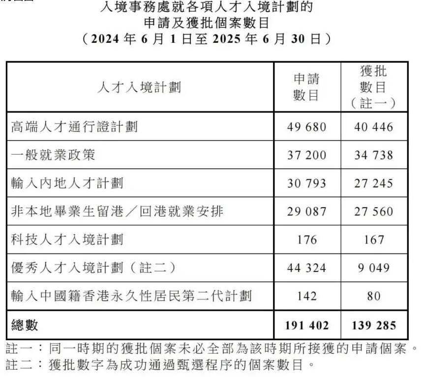 就2024年6月到今年6月,香港高才通计划申请数量高达5万宗,并成功批出4.1万宗申请。再加上其他的人才计划,已经有快20万的人数成功获批。港府已经超预期完成抢人才目标。