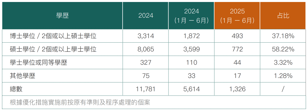 即便如此,2025年1月-6月,内地高才申请依旧有15931宗,占比高达94%。